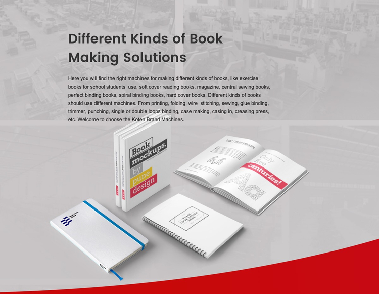 ما انواع مختلفی از کتابها را ارائه می دهیم ، تجهیزات اتصال دهنده ، از جمله کتابهای ورزشی دوخته شده برای دانش آموزان مدرسه ، چه دستگاه های اتصال نیمه اتوماتیک و هم کاملاً اتوماتیک. برای راه حل های اتوماتیک ، باید از دستگاه چاپ افست برای چاپ جلد کتاب استفاده کنید ، سپس از ما استفاده کنید